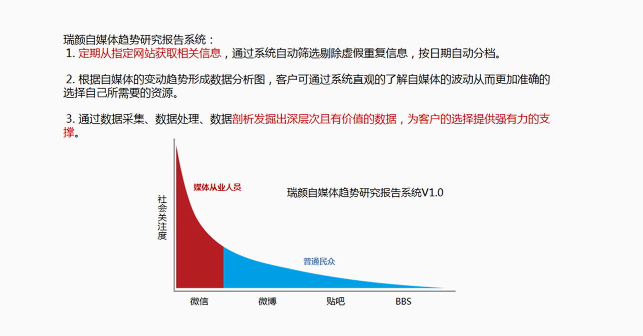 瑞顏建立項目資源的統(tǒng)一管理,成就行業(yè)第一個通過平臺整合資源并自動配對服務,給整個行業(yè)帶來了一道新的標桿。瑞顏大數(shù)據(jù)開發(fā)部通過數(shù)據(jù)聚合、內容聚合平臺、自媒體管理平臺、用戶交互數(shù)據(jù)平臺,建立一套內容數(shù)據(jù)、用戶數(shù)據(jù)與媒體數(shù)據(jù)交互的組合平臺,實現(xiàn)互聯(lián)網(wǎng)各內容的挖掘聚合、媒體內容的全新交互展現(xiàn)。